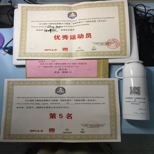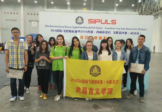 2016年5月14日-15日, 2016年IDA国际飞镖锦标赛在武汉国际博览中心隆重举行。我校代表队由来自新法、经管、艺设学院和外语系的20名学生组成,教练员为肖艳芬老师。